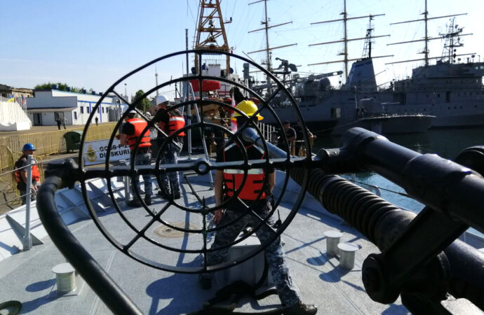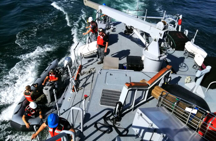 Одним из первых эпизодов учений стало ведение патрулирования определенных морских участков в режиме активного радиообмена информацией, отработка тактического маневрирования с уклонением от атак противника и отражение скоростных малоразмерных целей в море с применением оружия.