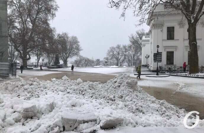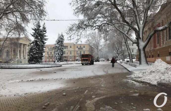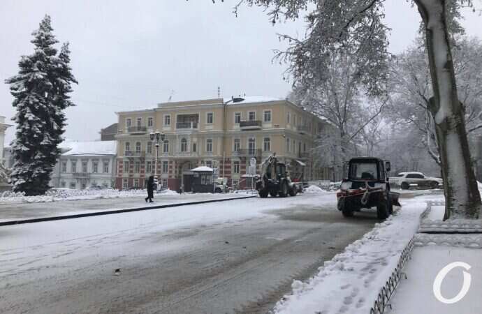По данным мэрии, снег начали чистить еще с ночи. Утром техника еще работала в центре города, что и запечатлел корреспондент «Одесской жизни».