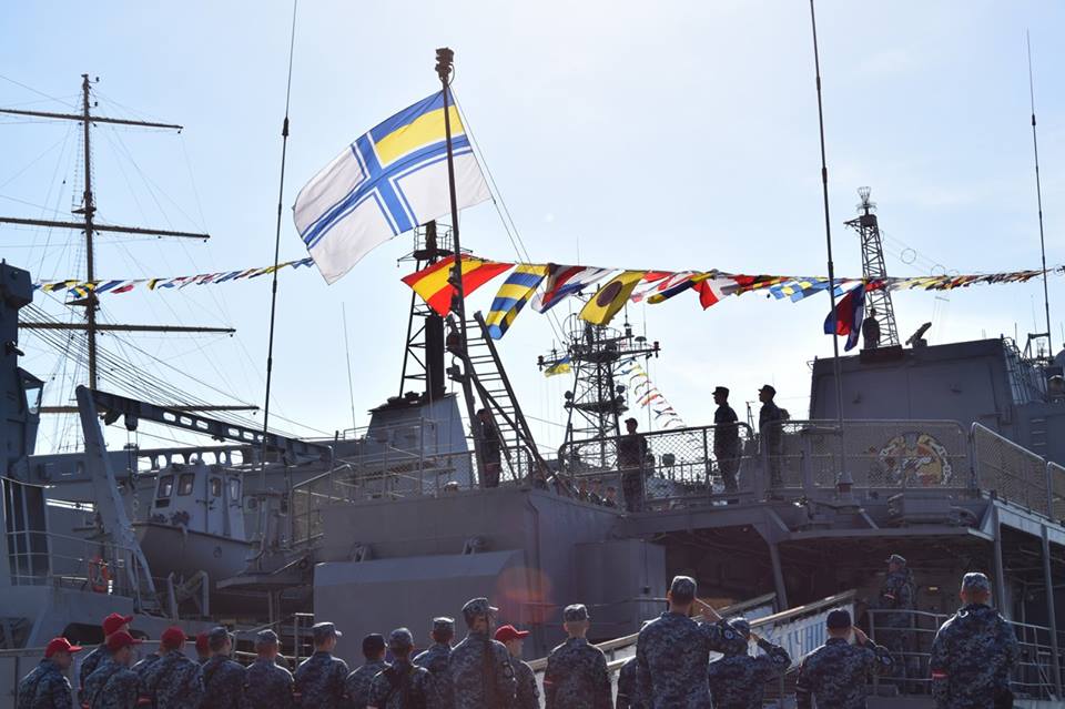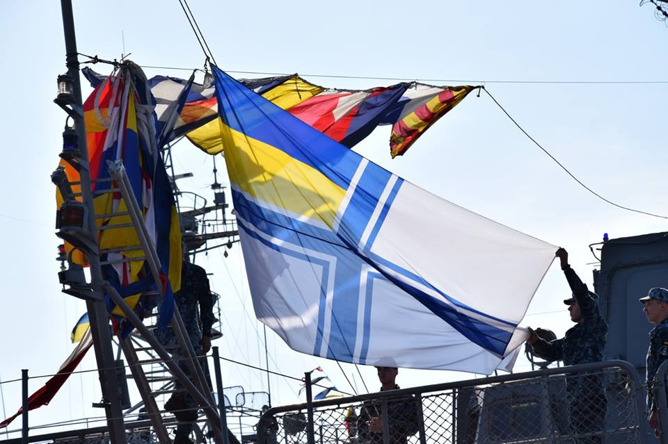 Как сообщили в пресс-центре командования ВМС, на кораблях украинского военно-морского флота были подняты флаги расцвечивания, а затем в торжественной обстановке поднят Военно-Морской Флаг Вооруженных Сил Украины.