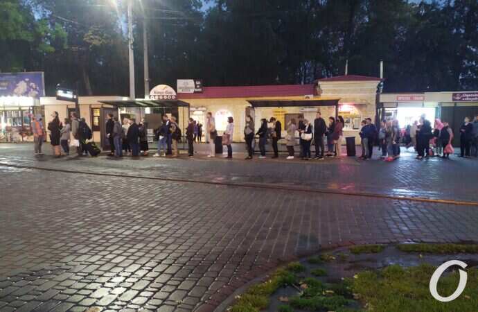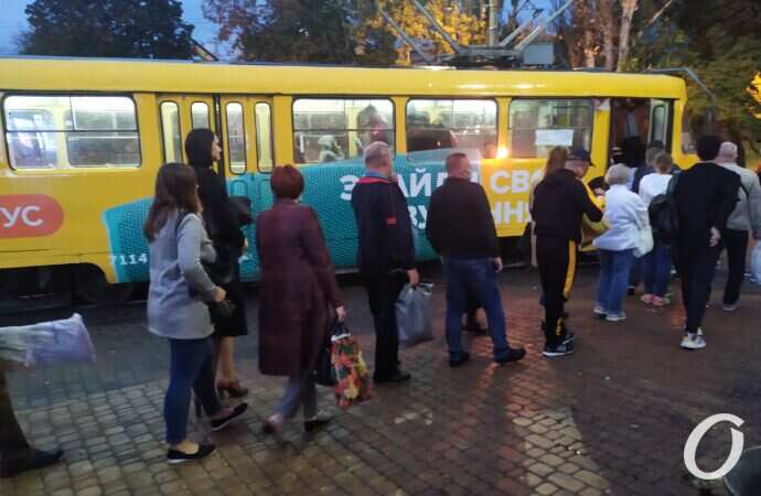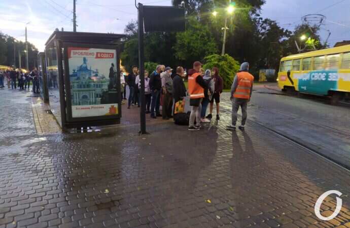 В вечерний час пик, когда люди добираются домой, на трамвайной остановке скапливаются огромные очереди. Дело в том, что в салон трамваев пускают пассажиров исключительно по количеству сидячих мест. На участке дежурят двое сотрудников «Одессагорэлектротранс» и ограничивают трафик пассажиров.
