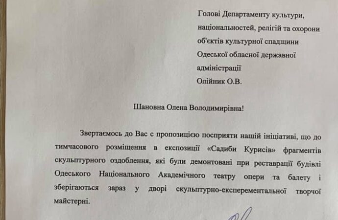 — В качестве реставратора выбран скульптор Сирченко О.Ю., мастерская которого расположена в Новой Дафиновке. Туда постепенно и начали перевозить скульптурные фрагменты для возвращения их к жизни, с дальнейшим экспонированием на территории новой туристической жемчужины Одесской области «усадьбы Курисов». Надеюсь, в скором времени первые фигуры дополнят собой уникальную атмосферу усадьбы и будут радовать наших посетителей, рассказывая о своей сложной судьбе и удивительной истории нашего города, — добавляет Дмитрий Волошенков.
