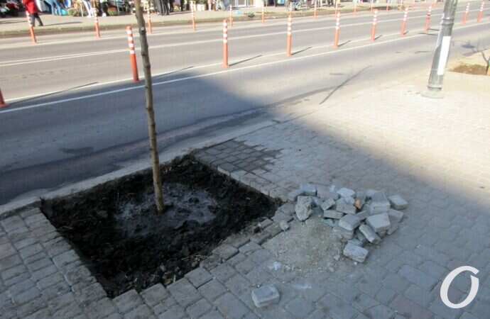 - На Екатерининской у одесского Привоза готовят лунки для будущих акаций