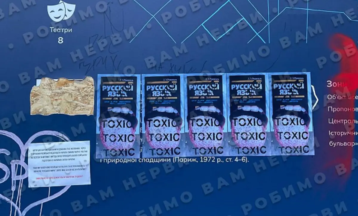 «Обновление коробки на Биржевой площади! Появились работы одесского художника Стаса Жалобнюка, недавно принявшего решение присоединиться к Вооруженным силам Украины. В них он подчеркивает токсичность «русского мира», в частности фигуры пушкина и русского языка, для украинской нации», – сказано в публикации.