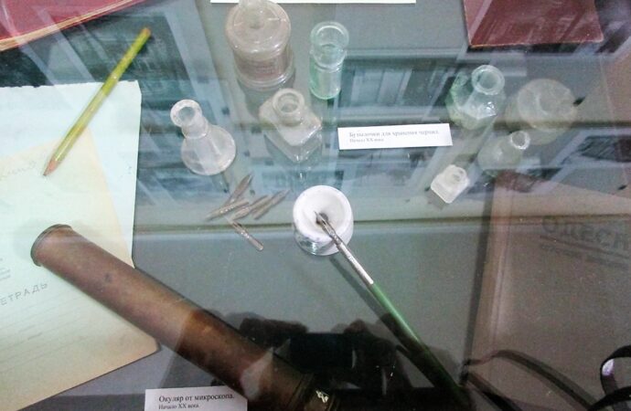 — Все представленные вещи — частички нашей истории, тем и ценны. И некоторые из них находились с большим трудом. Вот, к примеру, такая обыкновенная в свое время вещь как чернильница, стала теперь настоящим раритетом. Где ее отыскать сегодня? Может, на том же чердаке, среди других «сокровищ», терпеливо ждущих, когда с них сотрут пыль и покажут людям?.. — говорит Татьяна Рыбникова.