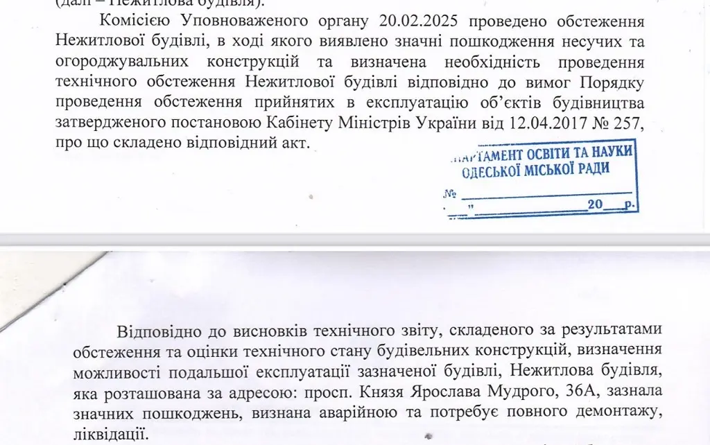 В Одессе начался снос здания детского сада в микрорайоне Таирова, сильно пострадавшего вследствие дроновой атаки в феврале этого года и не подлежащего восстановлению. При этом среди жителей окрестных домов начали настойчиво распространяться слухи о том, что данный земельный участок якобы уже продан, и на месте детсада скоро разместится либо жилой дом, либо коммерческий объект.
