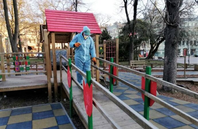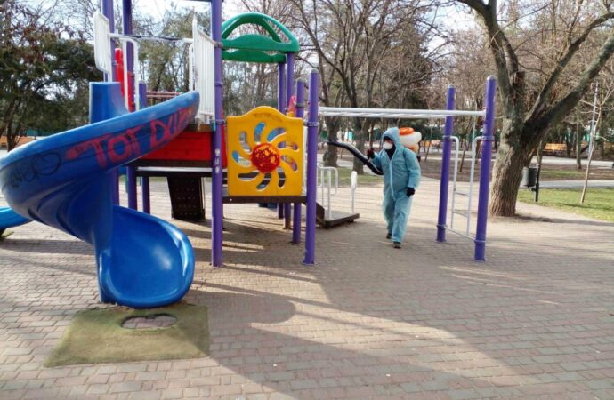 Ежедневную дезинфекцию проводят работники коммунального предприятия «Горзелентрест». Они обрабатывают те площадки, которые находятся на балансе предприятия.