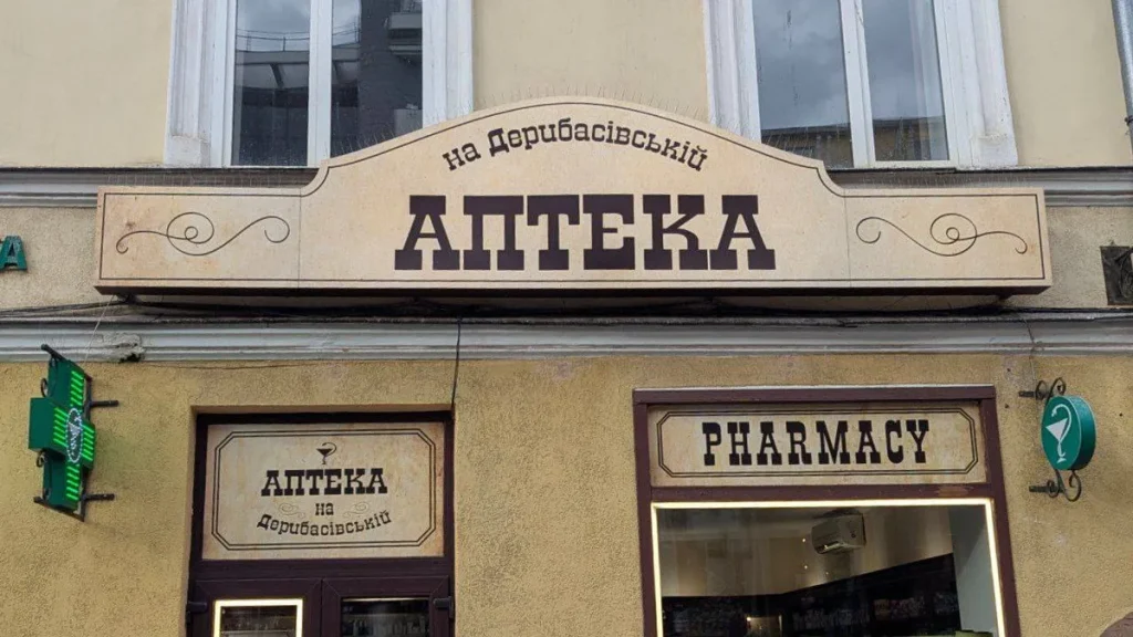 Аналогичные изменения произошли и на Дерибасовской — там аптечная вывеска также стала украиноязычной.