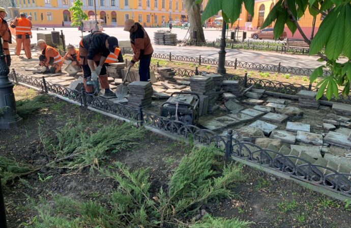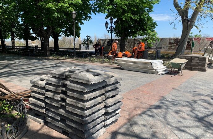 На площади вокруг памятника Дюку де Ришелье плитка будет сниматься полностью, основание на этом участке будет усилено, а затем данный участок также вымостят гранитной плиткой. Кроме того, горловины колодцев инженерных сетей в зоне проведения работ будут подняты на уровень новой плитки.
