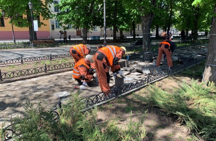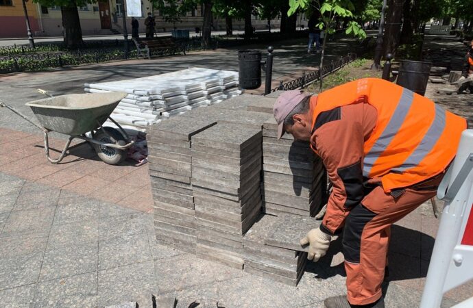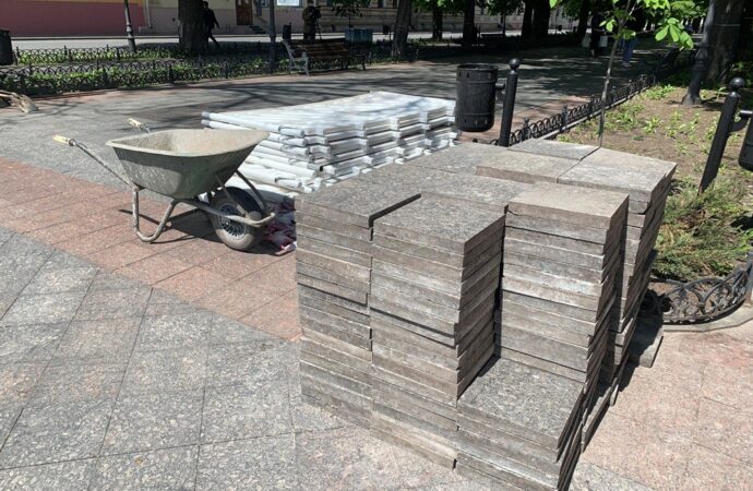 На аллеях в местах проседания бульвара будет снята тротуарная гранитная плитка, основание будет поднято, целая гранитная плитка будет уложена на свои места, деформированная — заменена на новую трех видов: красную, серую и темно-серую.