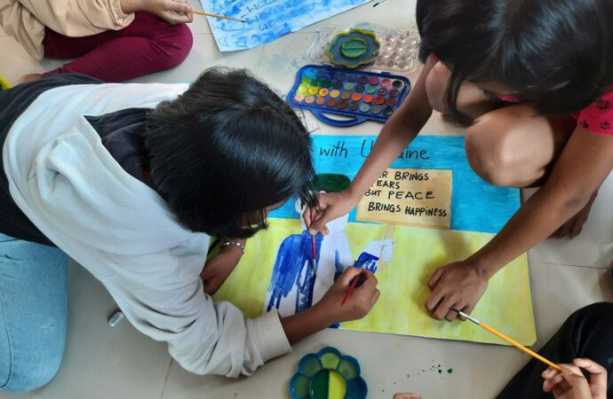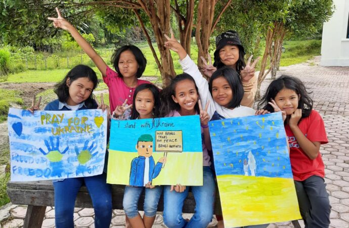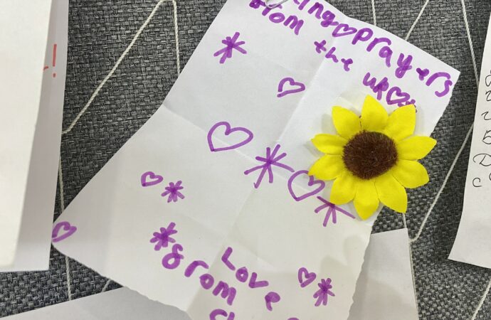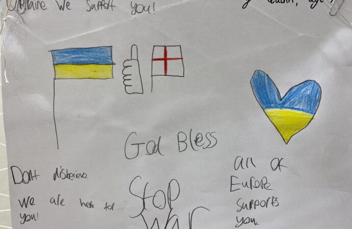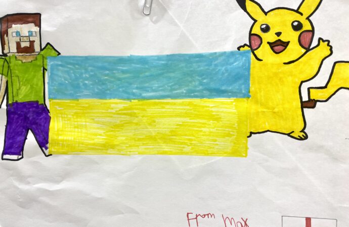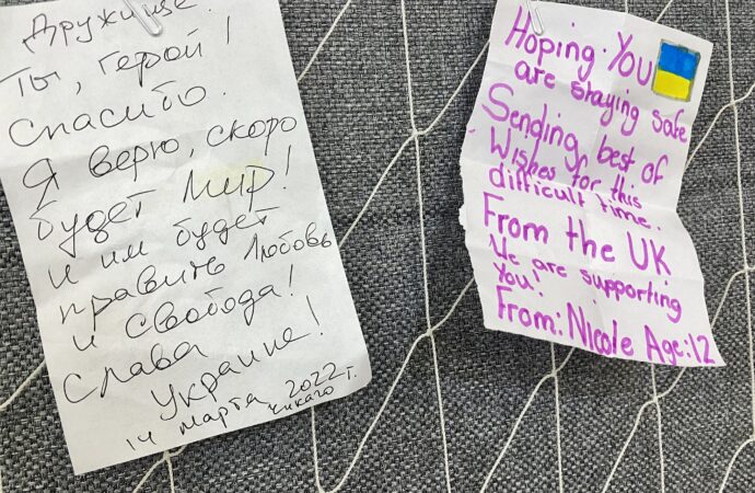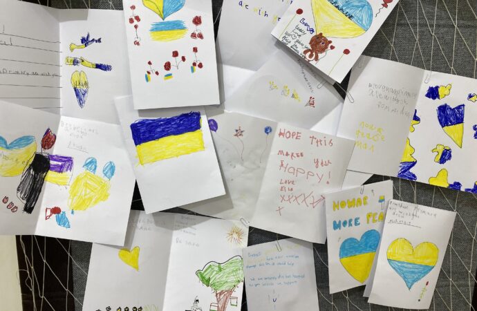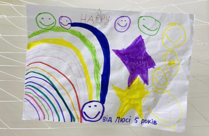Это была пачка рисунков детей из Великобритании. К ним присоединились рисунки, которые передали из БФ «Безграничные возможности» и «Волонтерского движения Одессы».
