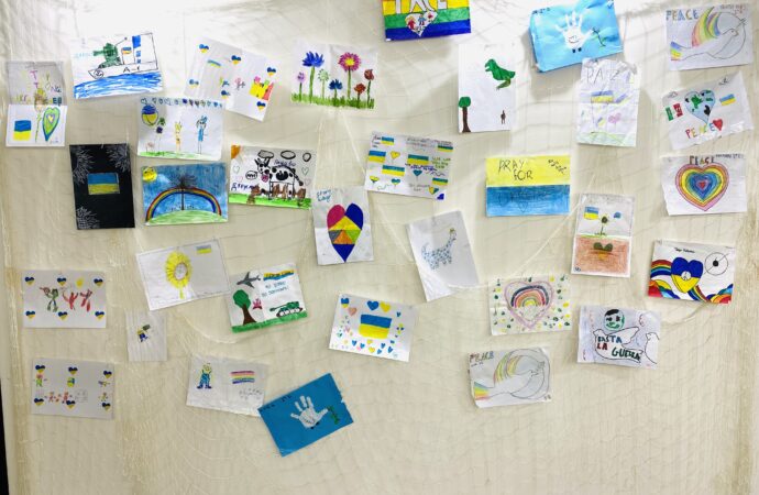 Всего на стенах галереи разместилось более 80 рисунков из Италии, Грузии, Польши, США, Индонезии. Кроме них, волонтеры передали еще листовки и письма. Все они содержат пожелания добра, победы, здоровья – маленькие лучики добра и света всем нам.