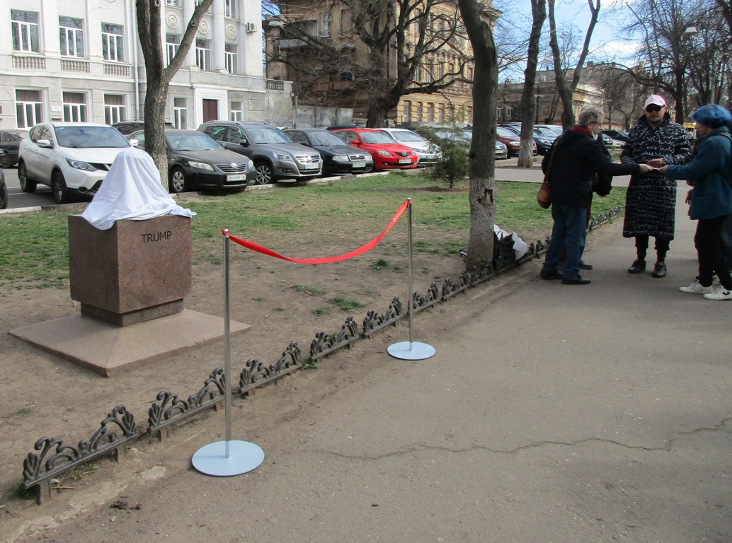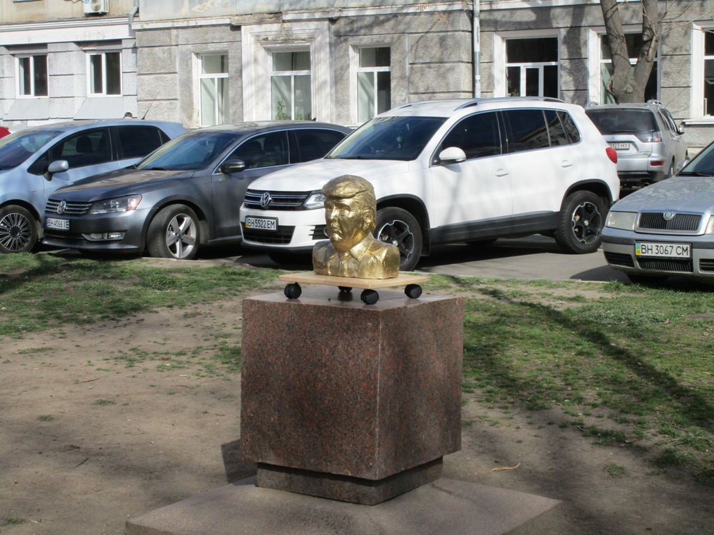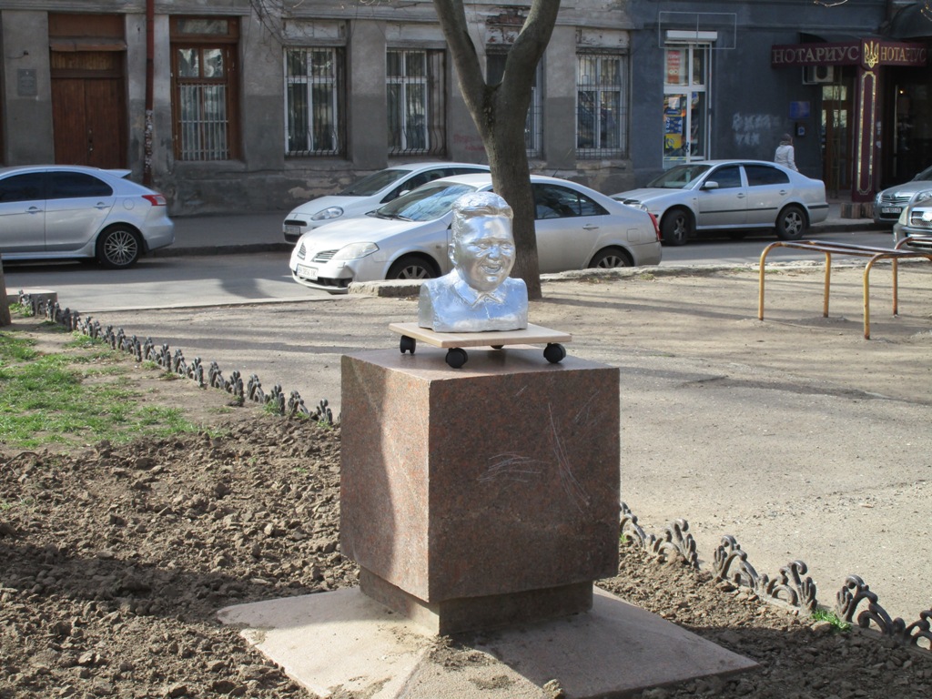 Постаментами для памятников стали имеющиеся на Александровском проспекте садовые тумбы. Ну а само событие довольно яркое: сегодня, по сути, в Одессе стартовал совершенно новый проект художника Bondero (Вадима Бондаренко) «Мобильные памятники».