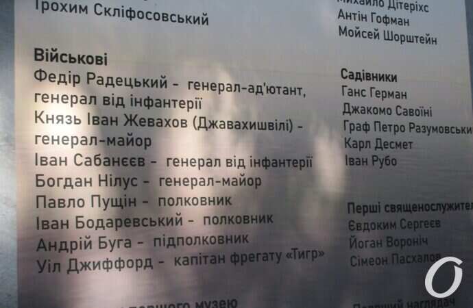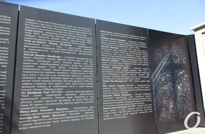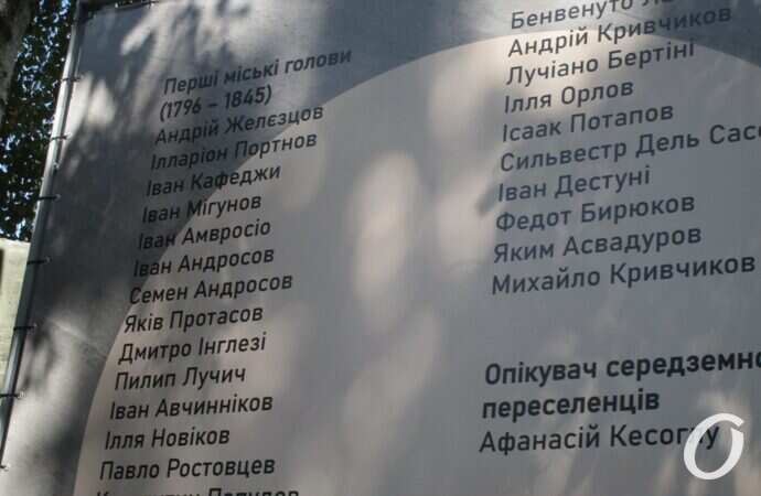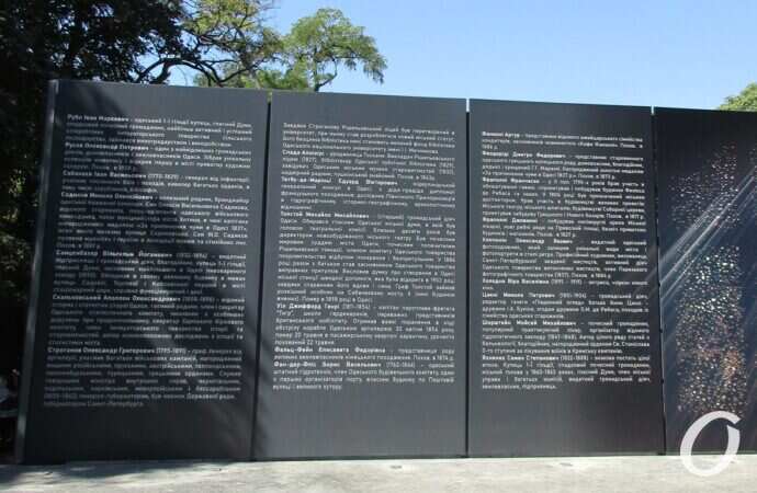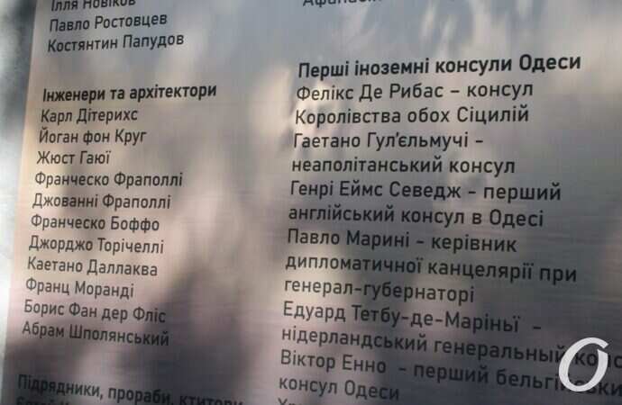 На объекте выгравировано около ста имен первых одесситов-основателей, инженеров, строителей и градоначальников.