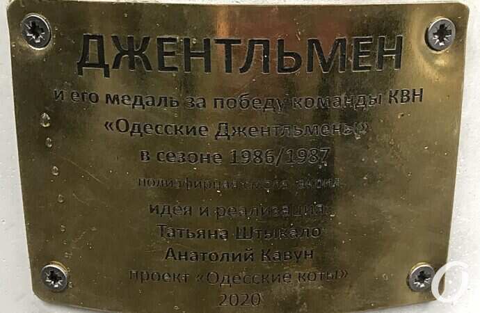 Место установки было выбрано не случайно. Именно в этом доме жил известный одесский драматург, сценарист и трижды чемпион Высшей лиги КВН (1972, 1987, 1990 годов) Ян Гельман. В ноябре 2012 году Ян Гельман погиб, а в 2019 году члены команды КВН “Джентльмены” ОГУ учредили Премию его имени, которая вручается за новые, оригинальные достижения в любых сферах деятельности, направленных на благо и во славу Одессы.