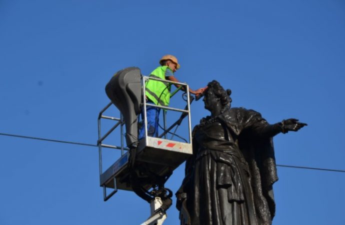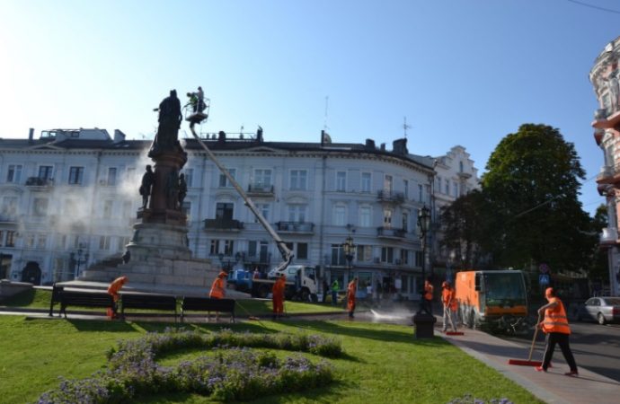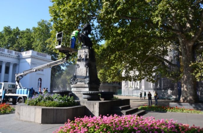 Среди вымытых и отчищенных памятников оказались и памятники герцогу Дюку де Ришилье, поэту Александру Пушкину, Основателям Одессы (императрице Екатерине ІІ).