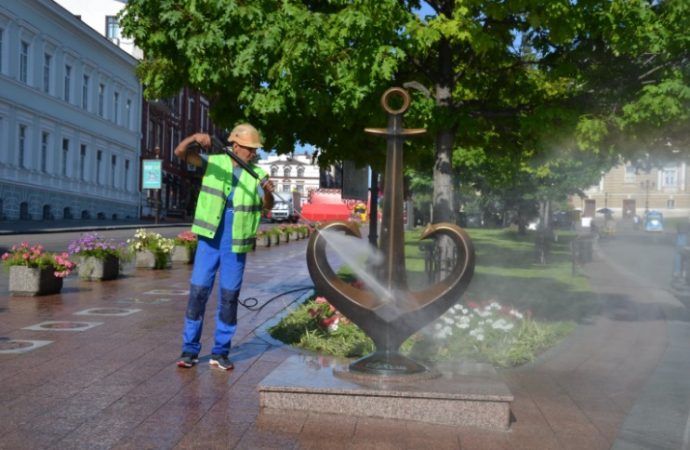 Коммунальщика также сообщили, что обычную уборку улиц в исторической центральной части города они проводят каждый день, потому что на улицах быстро появляется пыль.