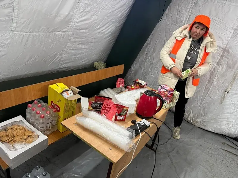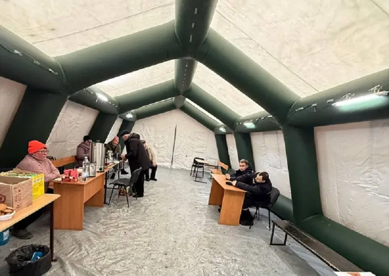 В палатках жители могут согреться, выпить горячие напитки и зарядить гаджеты.