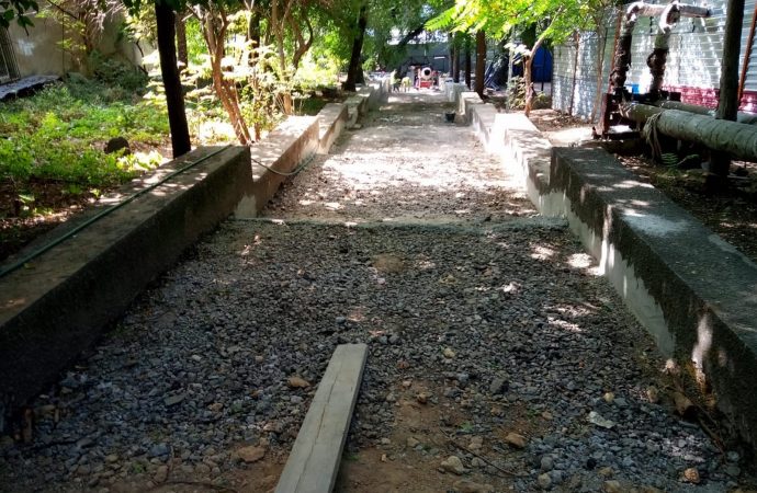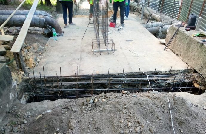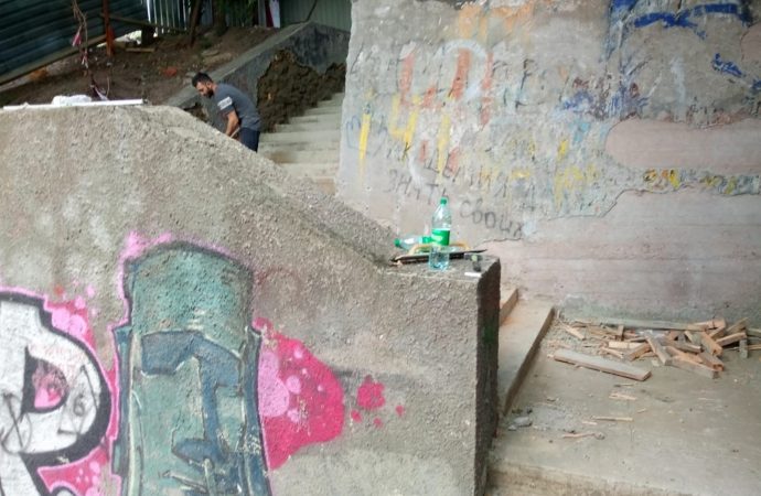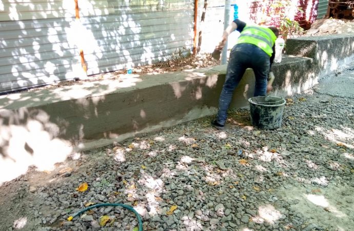 На сегодняшний день выполнены работы по ремонту парапетов (штукатурка и шпаклевка); устройству бетонной подготовки и изготовлению горячекатаной арматурной стали для последующего ремонта ступенек; демонтирован металлический переходной мостик через теплотрассу, разобраны монолитные фундаментные опоры под теплотрассой, а также изготовлена горячекатаная арматурная сталь для дальнейшего монтажа железобетонного мостика.
