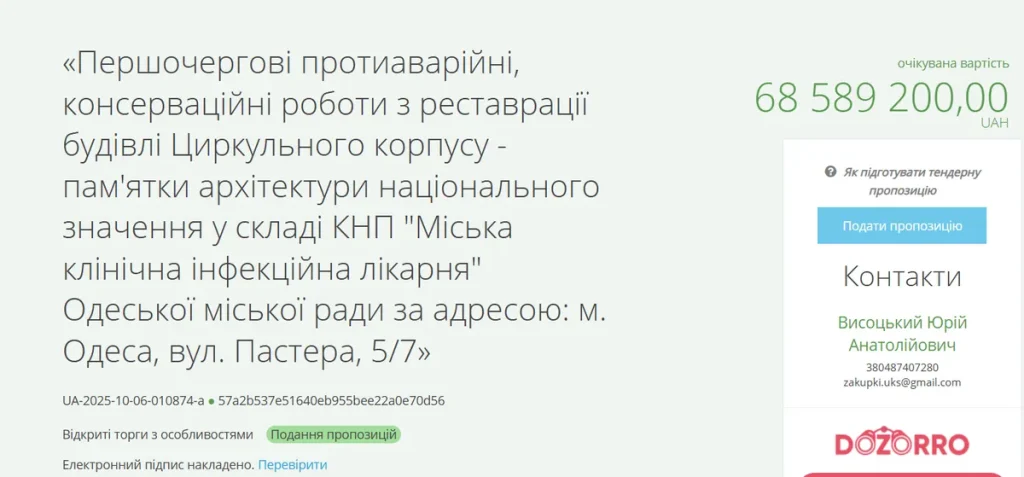 Заявки от подрядчиков принимаются до 22 октября 2025 года, в этот же день состоится аукцион. Власти подчёркивают, что реставрация здания — часть более широкой программы по сохранению исторического наследия Одессы.