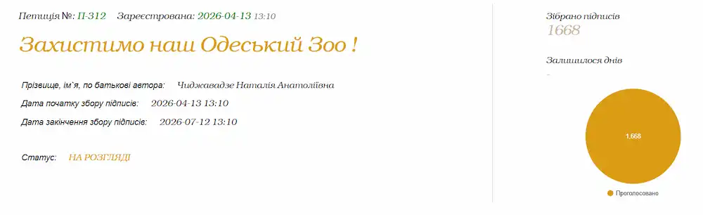 В Одессе на платформе городского совета «Социально активный гражданин» быстро набрала необходимое количество голосов петиция, касающаяся будущего городского зоопарка.