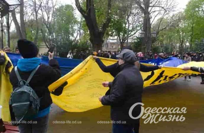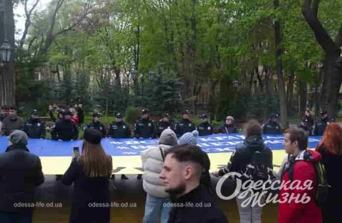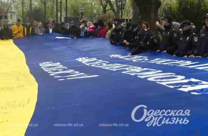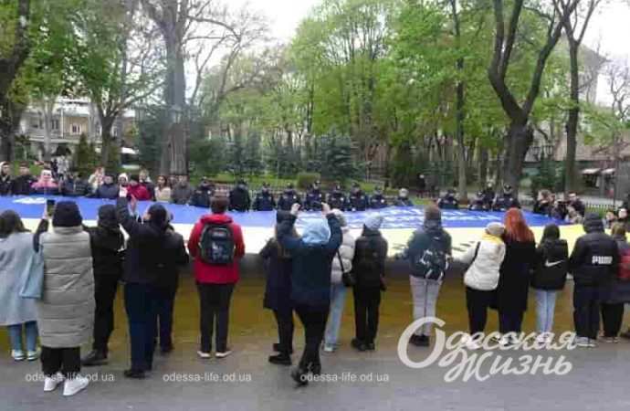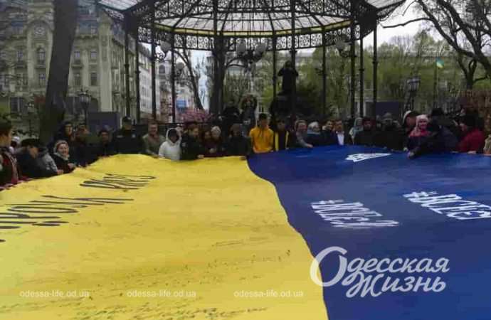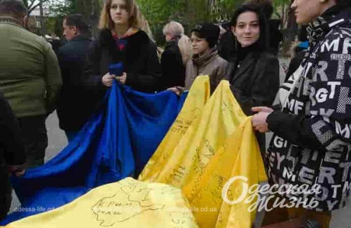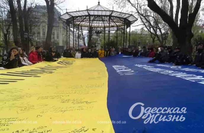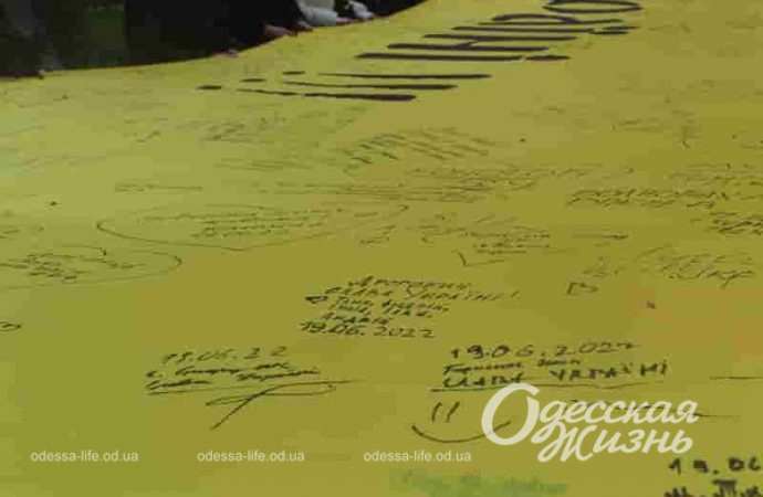В Одессе к акции присоединились представители общественности, курсанты университета внутренних дел, активная молодежь Одесской области. Они развернули флаг торжественно и написали на нем свои пожелания.
