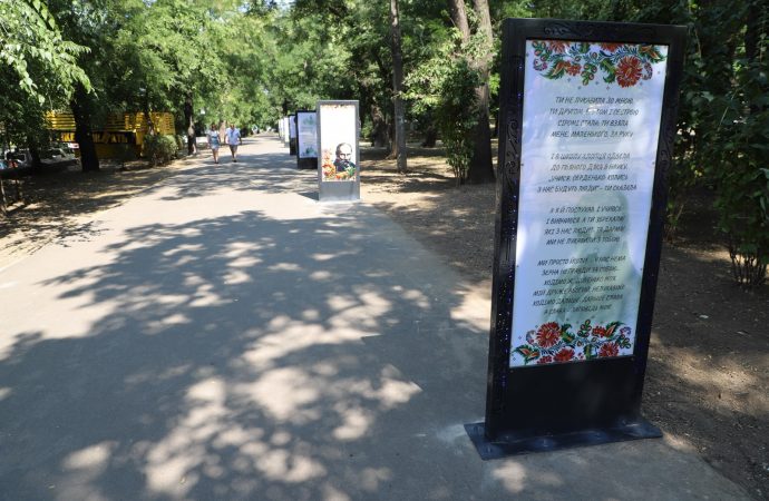 Отныне, прогуливаясь в парке под кронами деревьев, можно знакомиться с поэзией Тараса Шевченко.