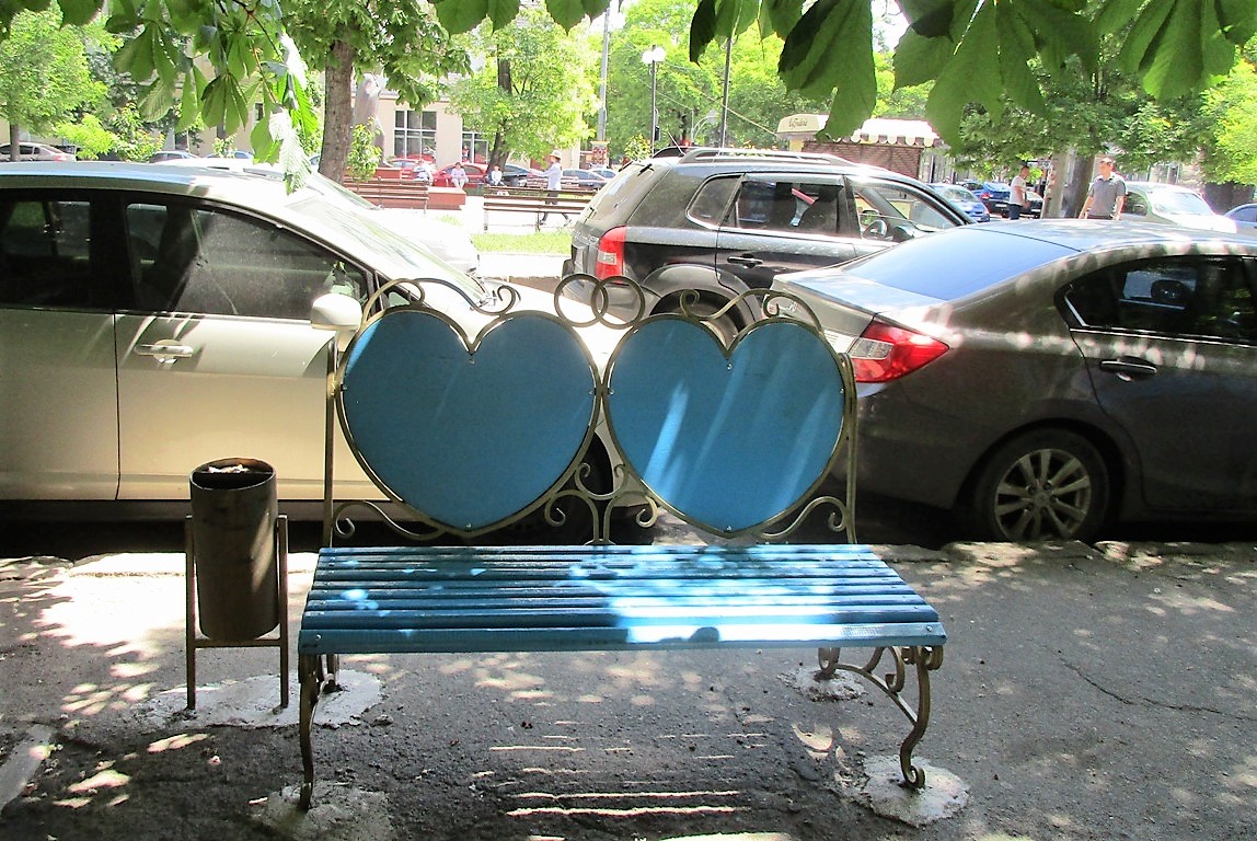 Ну и уж коль мы заговорили о новых необычных скамейках и романтических уголках, то самое время упомянуть, что возле одного из ЗАГСов в центре города красуется парка скамеек, спинки которых представляют собой любящие сердца.