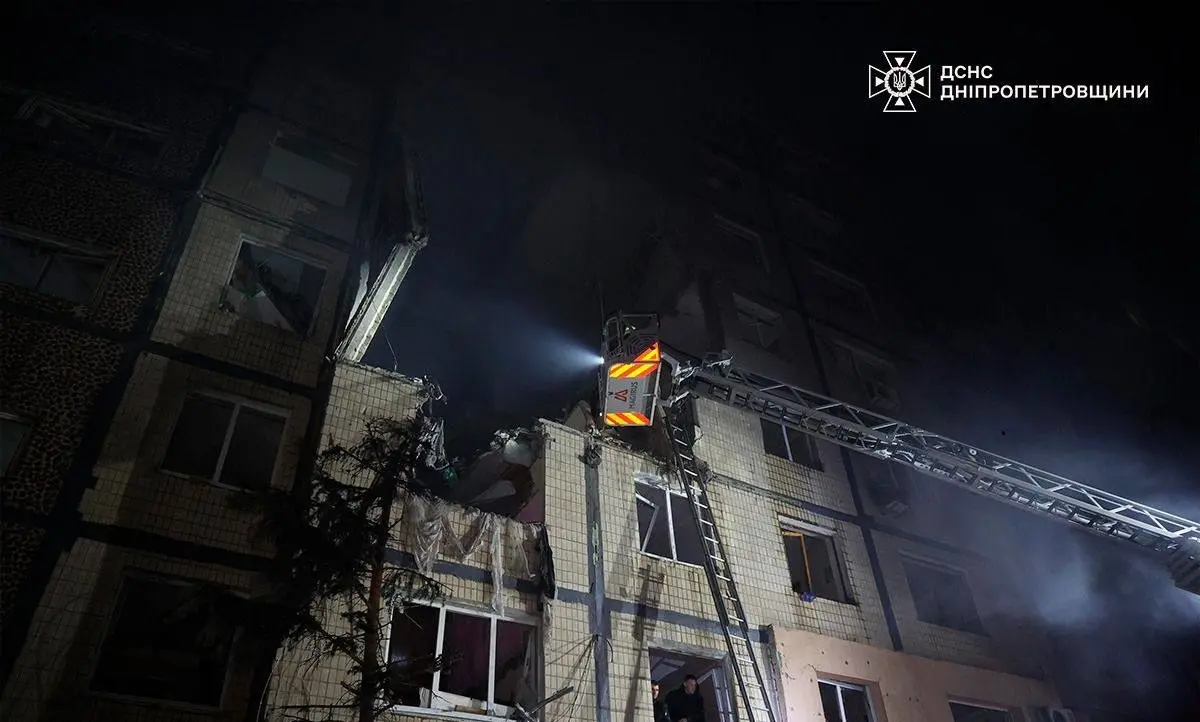 Ночью российский ударный дрон попал в девятиэтажный жилой дом в Днепре. В результате удара разрушены квартиры с 4-го по 6-й этажи и возник масштабный пожар, который спасатели уже ликвидировали.