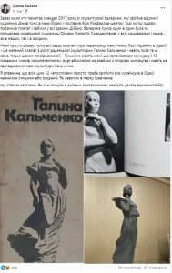 Активистка отметила, что сейчас мало кто помнит этот скандал, но почему все молчат об одесском? Авторка публикации подвергает сомнению компетентность организаторов конкурса и 12 членов жюри: «Только не говорите мне, что организаторы конкурса и 12 уважаемых членов «компетентного» жюри совершенно не знакомы с историей искусства и даже не догадывались о скульптурах Кальченко». По ее мнению, цель — «сделать все украинское в Одессе намеренно смешным или отвратительным», приводя пример скамеек в парке Шевченко.