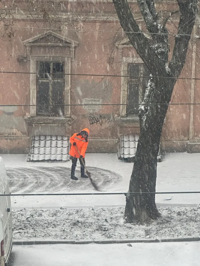 В Одессе резко ухудшились погодные условия – в городе пошел снег. Городские службы перевели в режим повышенной готовности, а с 13:30 приступили к обработке проезжей части реагентами.