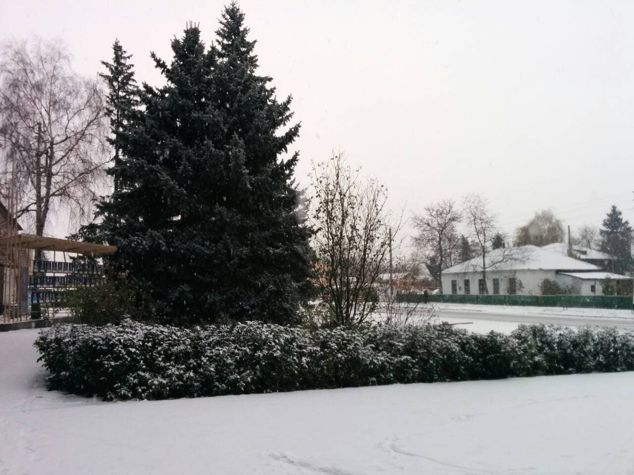 Позже читатели прислали нам фото заснеженного двора в Подольске. Ближе к обеду камера нашего корреспондента зафиксировала белеющие улицы Саврани.