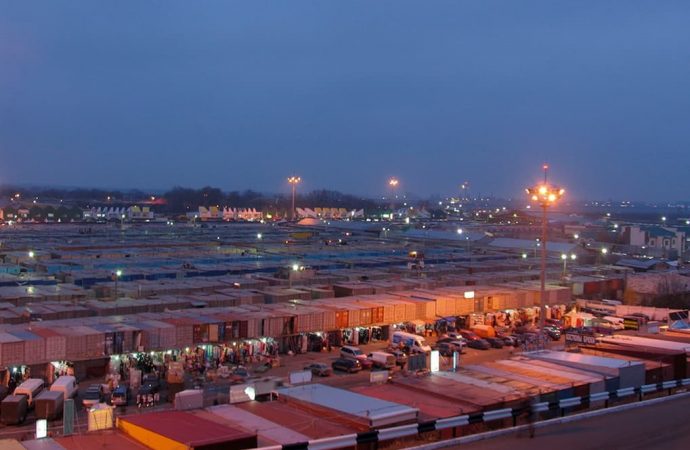Для удобства и безопасности продавцов и покупателей, участок торговли был огражден, потом- заасфальтирован. Затем было принято решение о сооружении металлических торговых столов и навесов – так возникла первая торговая площадь «7-го километра», в дальнейшем получившая название «Поле чудес». Позже знаменитый рынок стал обрастать торгово-складской инфраструктурой.