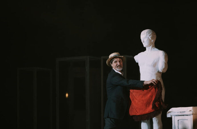 Максим Голенко мастер создавать на сцене особое пространство, где с легкостью жонглирует текстом, образами, добавляя свое видение и отношение к героям, протягивая между ними и зрителем ниточки, связывающие все это с современностью. Все это затягивает зрителя с момента появления в зрительном и не отпускает еще много часов после …