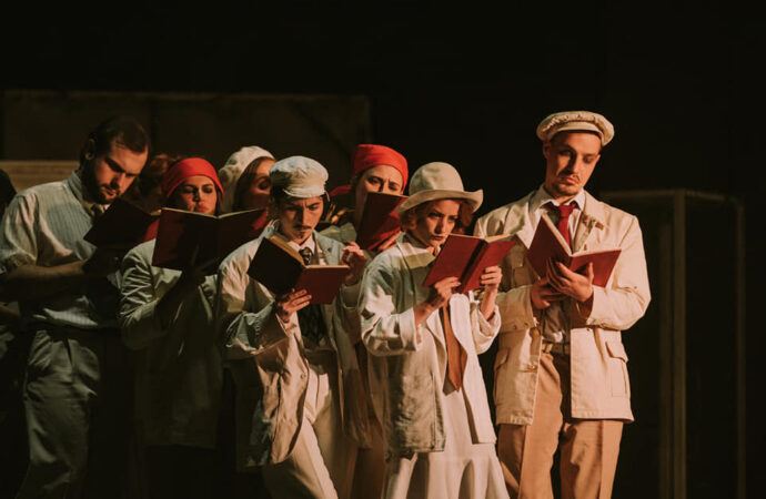 После Энеиды и Собачьего сердца это третья работа Голенко в Одесском украинском театре. И снова он предлагает нам «поиграться в классиков» на своей территории. Режиссер выводит «Илюшу» Ильфа (Сергей Куда) и «Женечку» Петрова (Женя Доляк) на сцену в качестве полноценных героев с собственными характерами, историями и «приколами». Они много курят, спорят друг с другом, с героями, со зрителем и, кажется, даже с режиссером.