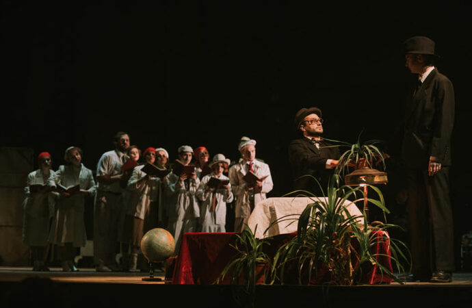 Новыми гранями заиграла молодая актриса Диана Каландаришвили в роли Зоси Синицкой (вы могли видеть актрису в спектакле “Сердце пополам”). Ярчайший образ выстроил Заслуженный артист Украины Игорь Геращенко. Самый настоящий Паниковский. Стопроцентное попадание в образ! Кажется, и Игорь это почувствовал и получал от игры невероятный кайф. А его партнер Александр Самусенко в роли Балаганова – ну это же вылитый Шура! Не совсем понятен изначально был подпольный миллионер Корейко (Роман Федосеев), пока он не пообещал вернуться к нам из 30-х в 90-е. А вот Бендер Юрия Хвостенко (актера дружественного васильковцам Франковского театра) получился очень техничным, «сбалансированным» и даже холодноватым, но Остап — известный сноб, не так ли? Кстати, теперь очень хочется посмотреть каким он будет у Дмитрия Усова, да и вообще, второй состав “Золотого теленка” также интригует и манит в театр.