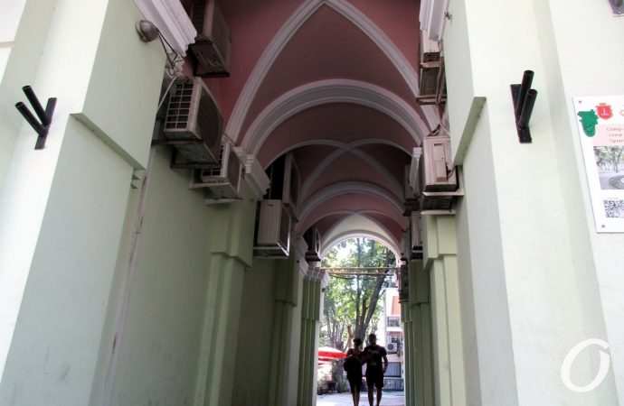 Пале-Рояль, так уже склалося, це ще й двір: і балкони деяких житлових будинків, що розташовані на вулиці Катерининській, теж виходять сюди.