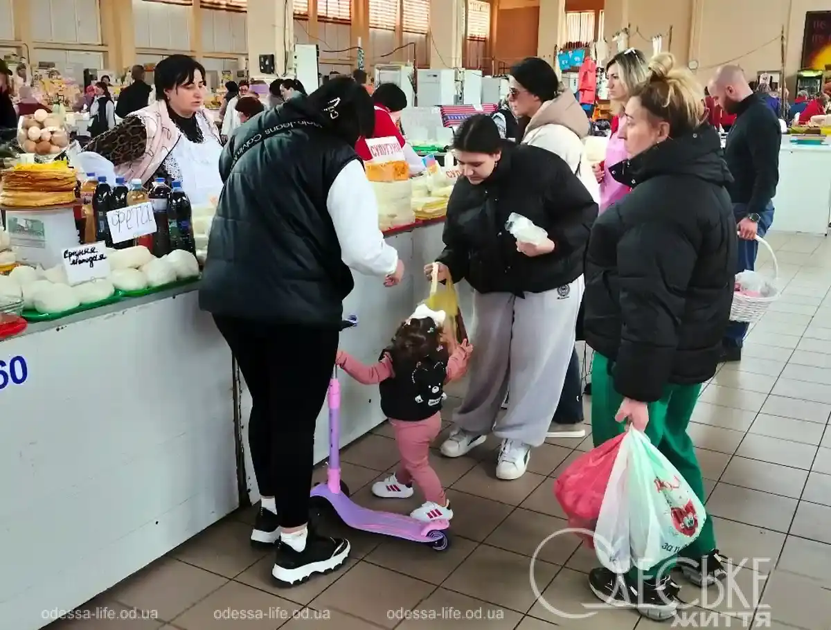 Після свят одеський Привоз живе у звичному ритмі: людей багато, товару вистачає, але ціни — без особливих поступок. Яйця трохи подешевшали, зате більшість продуктів тримаються на «святковому» рівні — попереду Проводи, і попит знову зростає.