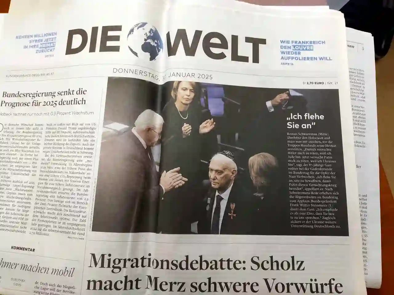 Роман Маркович розповів тоді про страшні спогади про перебування у гетто, а потім звернувся безпосередньо до членів Бундестагу: