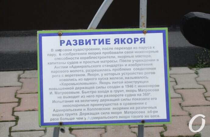 На Морвокзалі є свій виставковий комплекс, а ще – справжній музей просто неба, де зібрані якорі, дуже давні та сучасніші. Навіть якщо погода зовсім не прогулянкова, і людей сюди прийшло зовсім мало, вони обов’язково вивчатимуть якорі, які не втомлюються залучати відвідувачів. Все обходиться без гіда: досить пояснювальних табличок. Експозиція зібрала якорі, виявлені в Чорному морі в різні часи.
