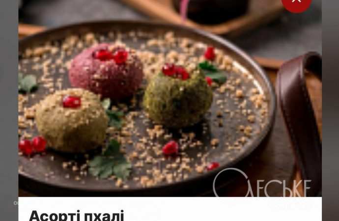 На жаль, пхалі в цьому закладі мені не сподобалися. У ресторані їх подають у трьох основних смаках – з буряка, зі шпинату та з квасолі. І якщо на смак бурякові були нормальні, то шпинатні та квасолеві були дуже гіркими. Таке враження, що в них додали багато гірких горіхів або дуже багато якоїсь гіркої спеції. До того ж у страві не вистачало зерен гранату, хоча на фото в меню вони були присутні.