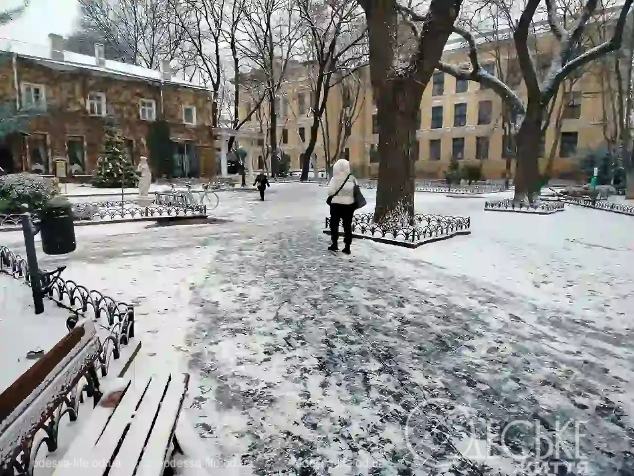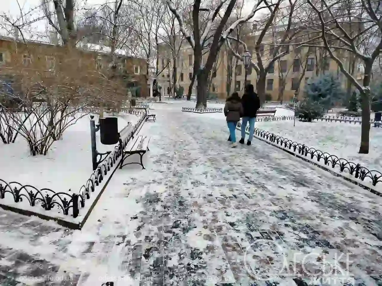 • У центрі Одеси випав сніг, який повністю змінив вигляд Міського саду;