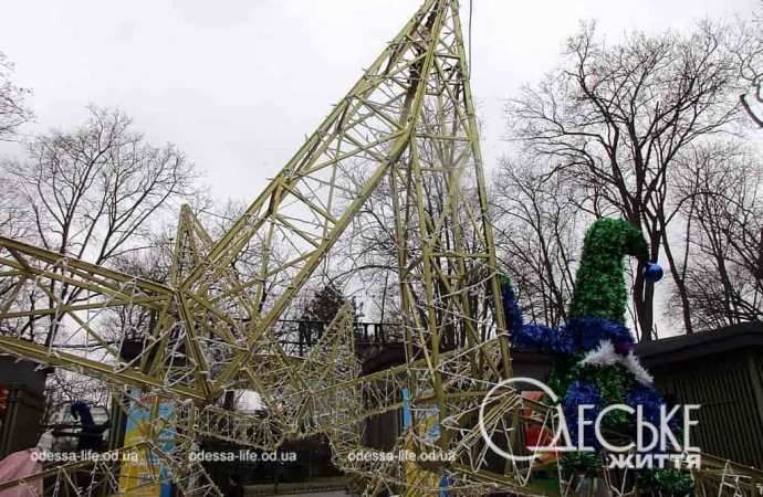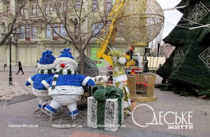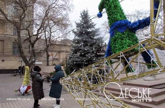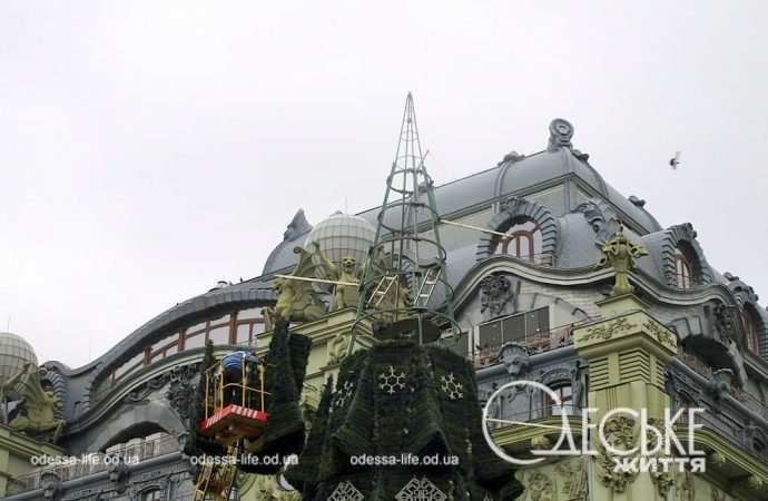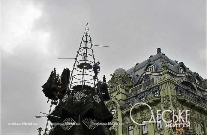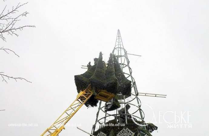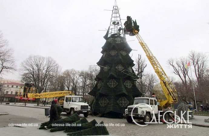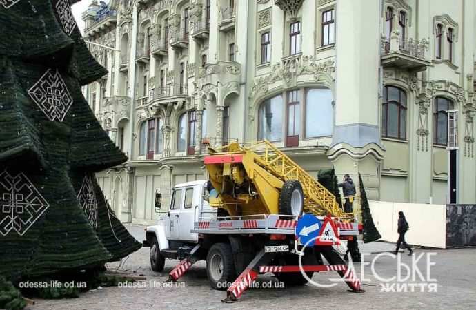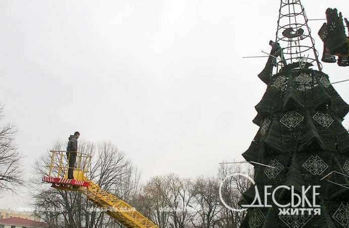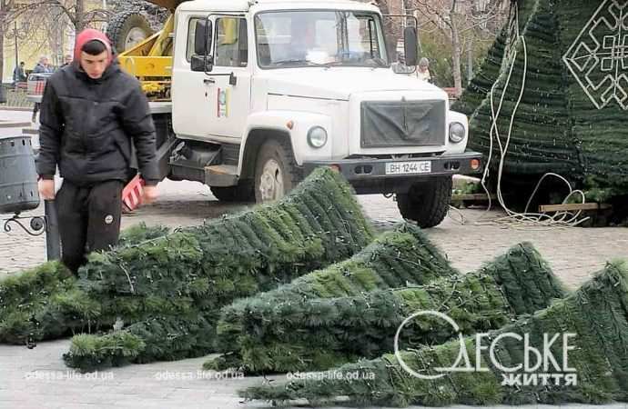 Комунальники демонтують головну ялинку на Дерибасівській, яка засяяла шостого грудня минулого року, у День Святого Миколая.