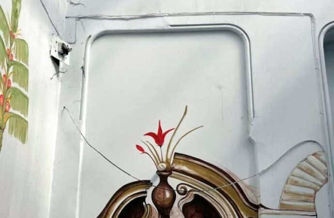 Вже й старий прапоротримач встигли нещодавно вкрасти… Один слід від нього у вигляді дірки у стіні залишився.