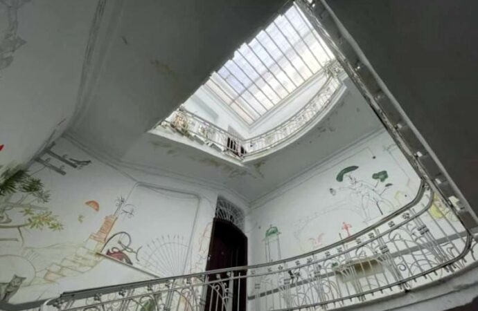 Минулого року ми розповідали про цей дивовижний будинок. Стоїть собі монументальний красень, красою вражає, незвичайністю, а ще тим, що ця пам’ятка архітектури гостро потребує реставрації: сколи, тріщини, а на його даху навіть дерева проросли.