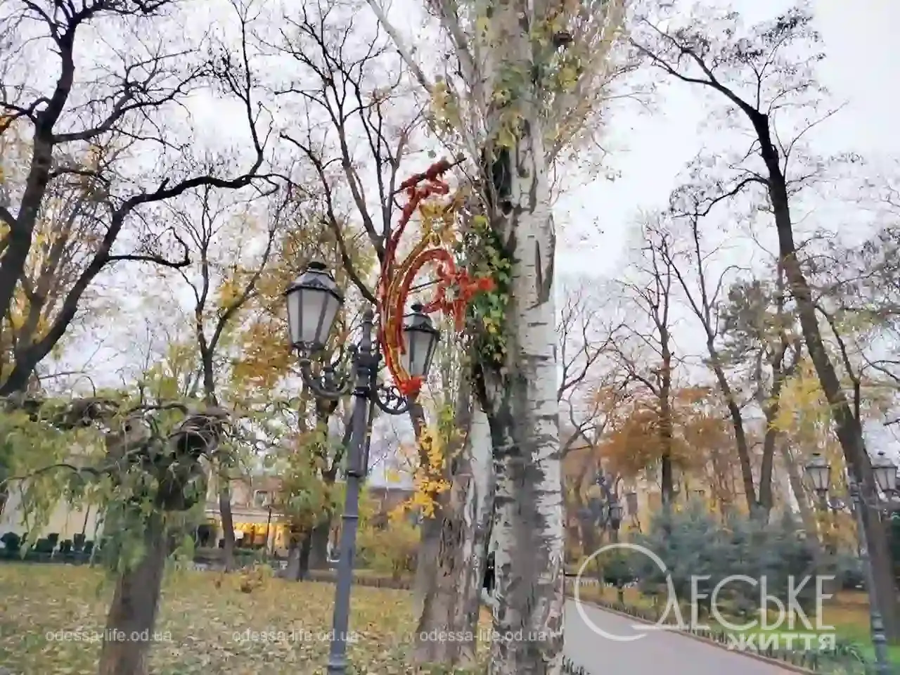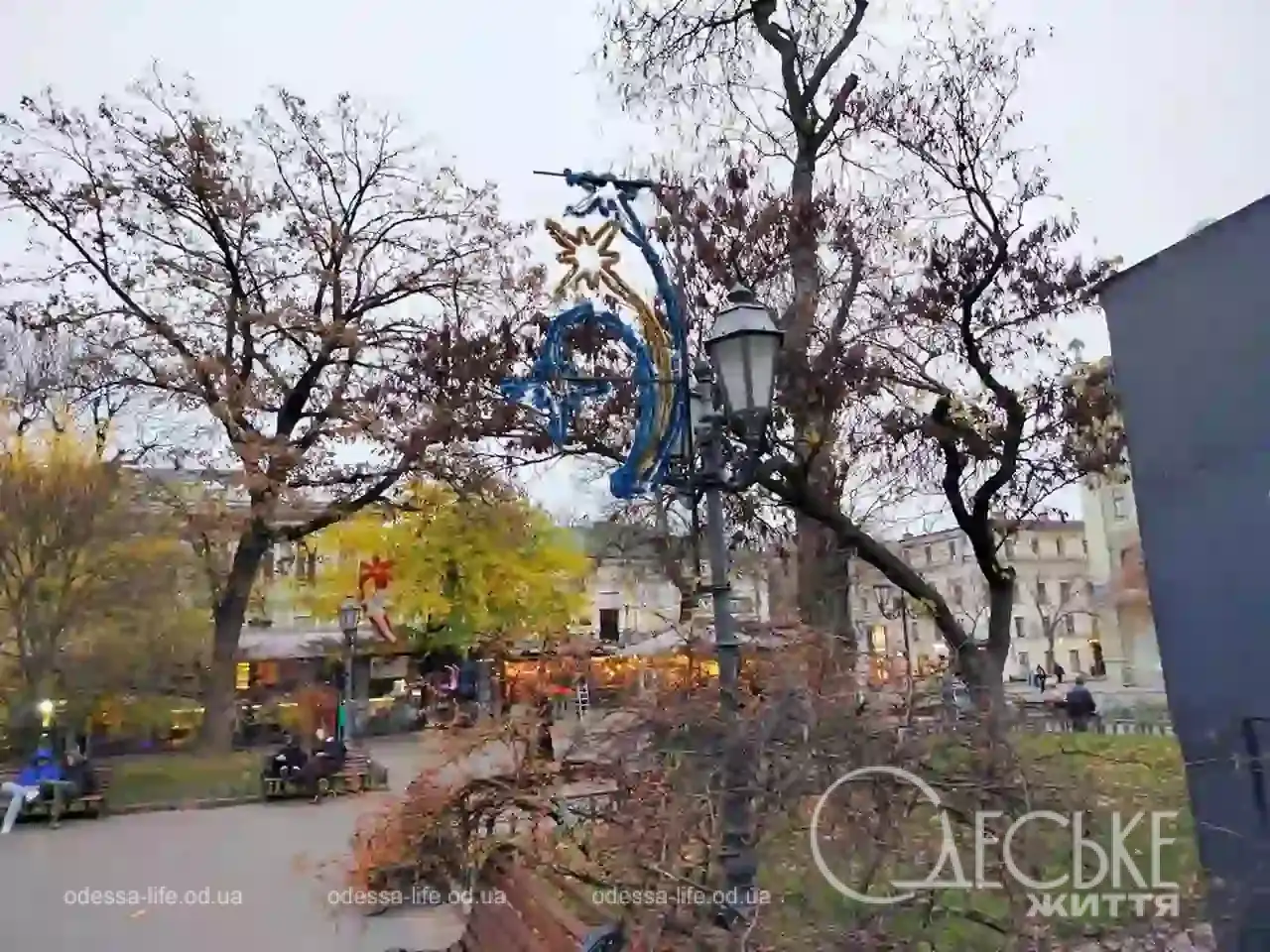 Міський сад уже майже весь вбраний — довгі нитки вогників переплітаються між гілками дерев, у повітрі відчувається передчуття свята. І зовсім скоро на Дерибасівській з’явиться головна ялинка міста — яскрава, пишна, така, що здатна об’єднати навколо себе тисячі усмішок.