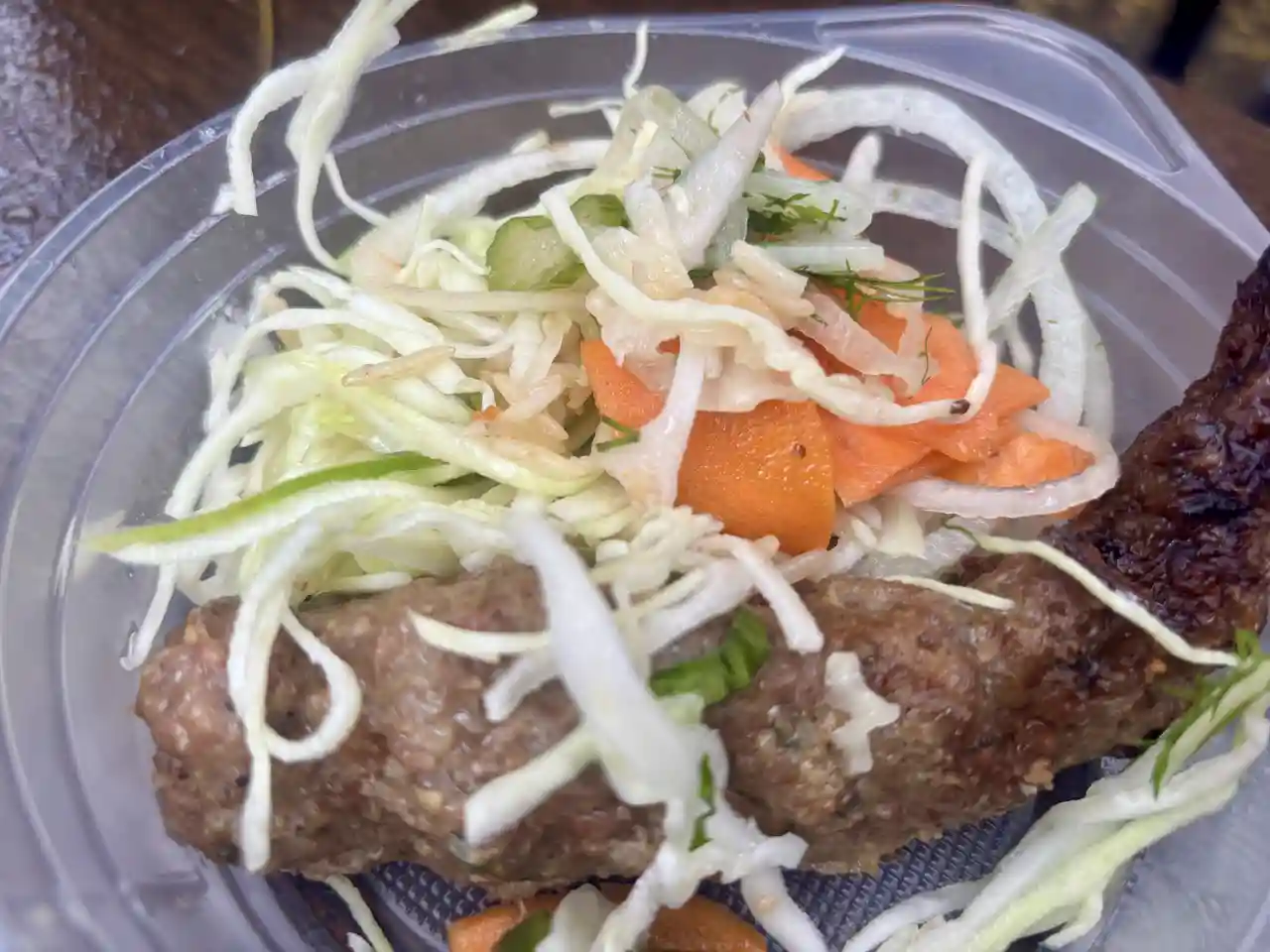 В принципі, тут він саме такий – соковитий, в міру гострий, лише з одного кінця трохи пересмажений. Люля добре смакує з капустяним салатом та маринованою морквою.