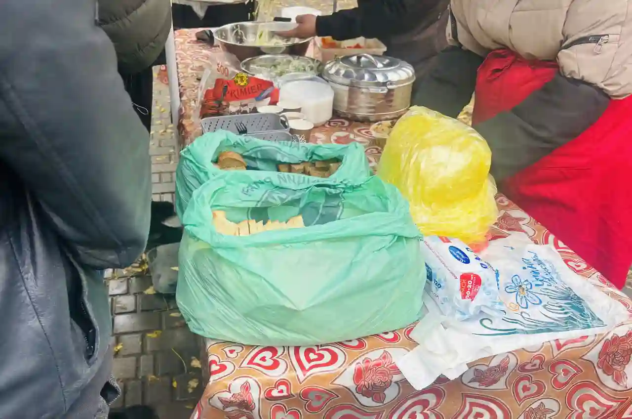 Важливо враховувати, що плов приїжджає на «Книжку» десь об 11-й ранку. А до години дня його майже весь зʼїдають. Я прийшла на початку другої та ледь встигла взяти порцію. Багато людей купують одразу декілька порцій плову додому. Звісно, що майже всі покупці вже постійні.