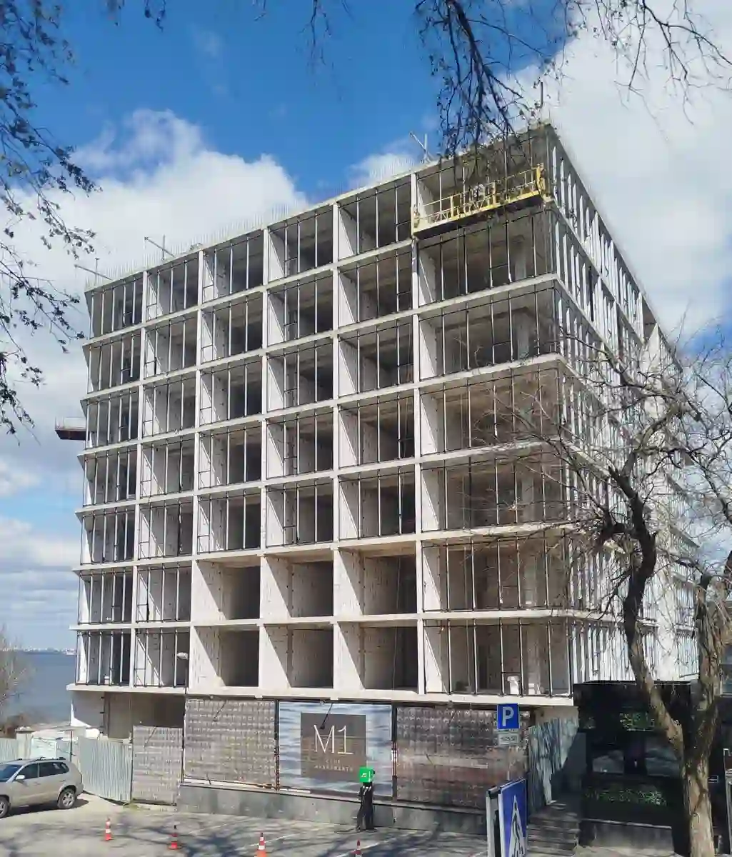 Після зведення кількох поверхів на порталі з продажу нерухомості «Лун» з’явилася інформація про об’єкт – тільки він виявився не оздоровчим центром, а клубним будинком M1 Club Apartments. Вже на початку 2025-го стали помітні візуально зайві поверхи, які спотворили вид на море з боку меморіального комплексу.