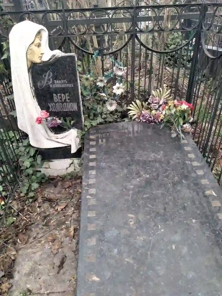 У фільмі Петра Чардиніна «Мовчи, смуток, мовчи» зіграла свою останню роль легендарна зірка «великого німого» Віра Холодна. І тому поруч із могильною плитою режисера встановлено її кенотаф – символічний надгробний пам’ятник. Похована ж Віра Холодна була на Першому християнському кладовищі. Її могилу знищили, коли в 30-ті роки зруйнували найстаріший некрополь Одеси.