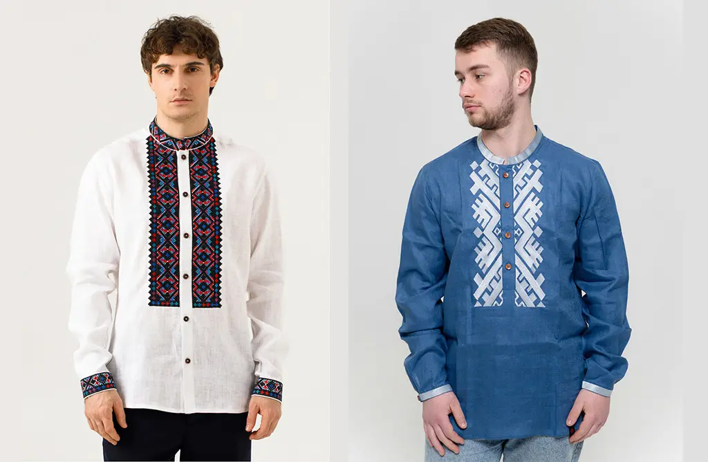 Чоловічі вишиванки традиційно стриманіші за жіночі. Найпоширеніші кольори – білий, льняний, сірий, темно-синій. Орнамент частіше геометричний, ніж квітковий, і займає менше простору на тканині.